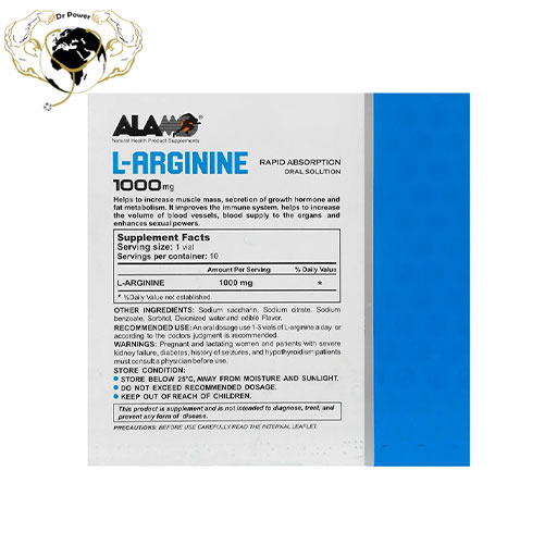 ویال ال آرژنین 1000 آلامو با جذب سریع، افزایش پمپاژ خون، انرژی و استقامت، بهترین انتخاب برای تمرینات سنگین و بدنسازی حرفهای است.