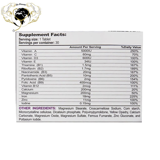مولتی ویتامین مینرال 30 عددی ورقهای ژن استار یک مکمل کامل برای افزایش انرژی، تقویت ایمنی و جبران کمبود ویتامینها و املاح بدن است.